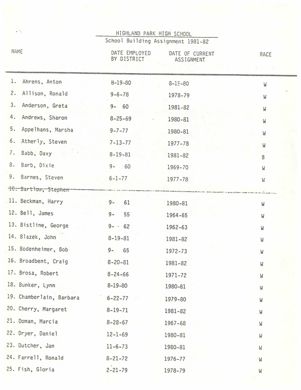 Case Data and Exhibits for Brown III, a relitigation of Brown v. Topeka Board of Education (1954) that corrected resegregation issues caused by open enrollment school choice in 1992. Document to the plaintiffs from the defense in response to questions about teacher school assignments, current assignments, race of teacher, year hired, and more.