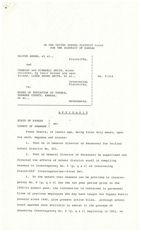 Case Data and Exhibits for Brown III, a relitigation of Brown v. Topeka Board of Education (1954) that corrected resegregation issues caused by open enrollment school choice in 1992. Four affidavits from Topeka School District defendants presenting arguments of why some documents requested by the plaintiff attorneys cannot be produced on time.