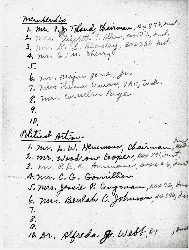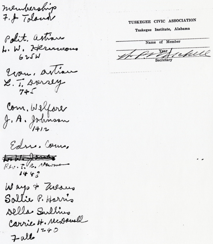 Senator Birdie F. Welcome stressed the need for citizenship and political responsibility, while K.L. Buford highlighted the Tuskegee Civic Association's efforts to promote citizenship and political participation.
