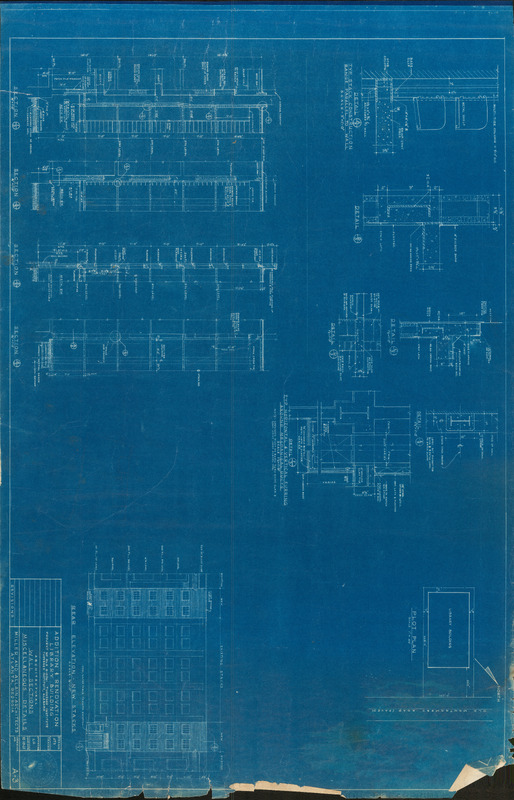 3rd Architectual blueprint drawing to the additions and renovations of library building. Blueprint shows the wall sections of the building and miscellaneous details about the walls.