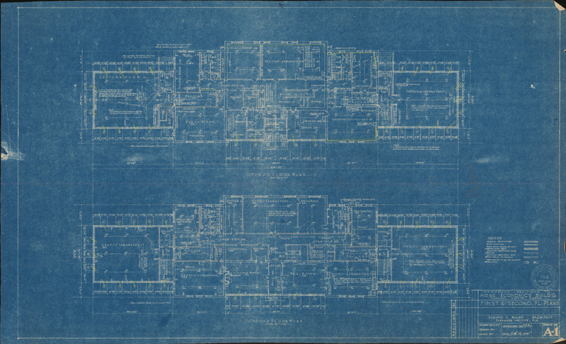 1st mechancial drawing blueprint for the heating, ventilating, and air conditioning of the additions and renovations of the proposed Library Building at Tuskegee Institute located in Tuskegee, Alabama.