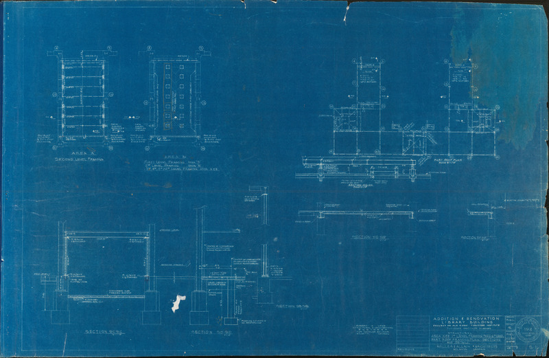 The first structural blueprint drawing of the additions and renovations for the Library Building at Tuskegee Institute loacted in Tuskegee, Alabama. This blueprint drawing shows the 1st - 6th Level Framing/Part Roof Framing Plan.