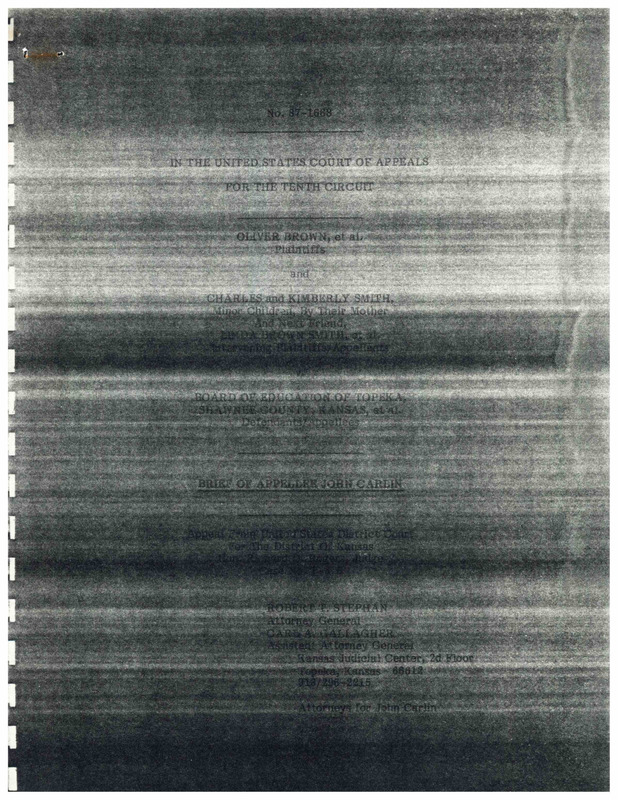 Case Data and Exhibits for Brown III, a relitigation of Brown v. Topeka Board of Education (1954) that corrected resegregation issues caused by open enrollment school choice in 1992. This brief to the U.S. Court of Appeals argues that Former Kansas Governor John Carlin did not have the power to affect desegregation and should not be a defendant.