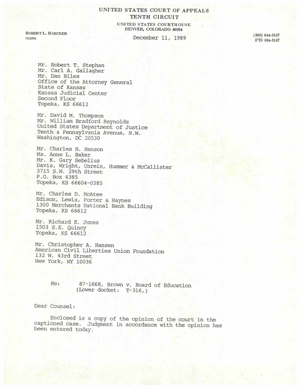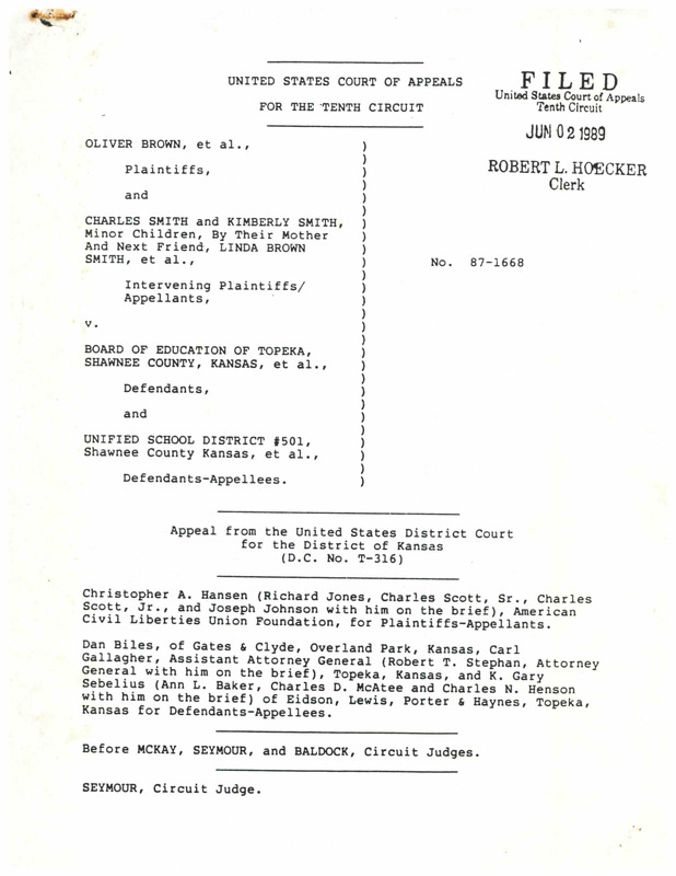 Case Data and Exhibits for Brown III, a relitigation of Brown v. Topeka Board of Education (1954) that corrected resegregation issues caused by open enrollment school choice in 1992. U.S. District Court for the District of Kansas Circuit Judge Stephanie Seymour’s opinion, ruling that Topeka school’s have not done enough to rectify segregation.