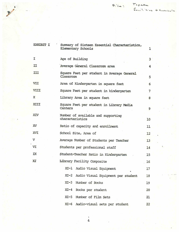 Case Data and Exhibits for Brown III, a relitigation of Brown v. Topeka Board of Education (1954) that corrected resegregation issues caused by open enrollment school choice in 1992. The report breaks down a study of all facilities, infrastructure, materials, and teaching resources for Topeka Public School for the history of the district.