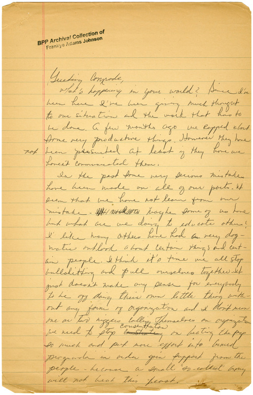 The unnamed sender addresses the comrades about the mistreatment of women in the Black Panther Party and explains the historical importance of women in the struggle as revolutionaries. The sender urges the revolutionaries to not make the same past mistakes.