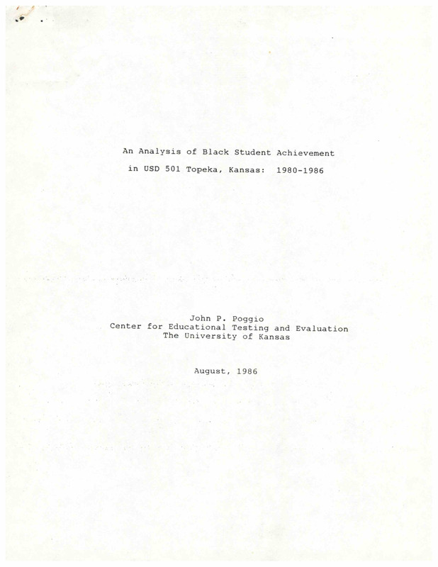 Case Data and Exhibits for Brown III, a relitigation of Brown v. Topeka Board of Education (1954) that corrected resegregation issues caused by open enrollment school choice in 1992. A report analyzing Black student achievement in Topeka, Kansas, schools from 1980-1986 that found the racial composition of schools had no effect on student learning.