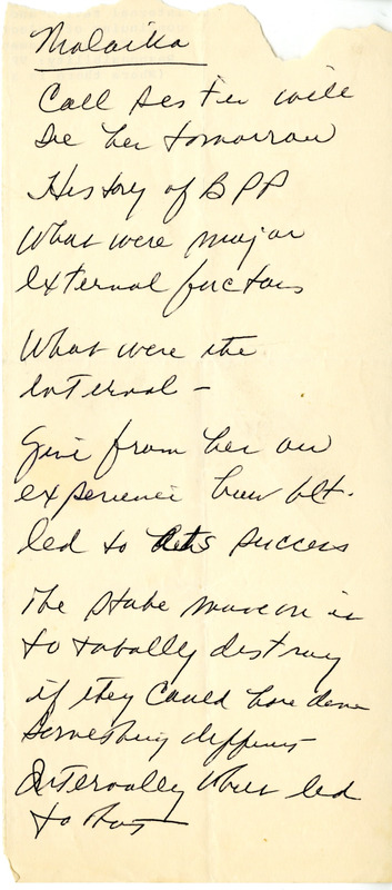A list of questions about the history of the Black Panther Party written by an unknown author. The questions ask about the internal and external factors that led to their development. There are also questions referring to the success of the Party and doing things differently.