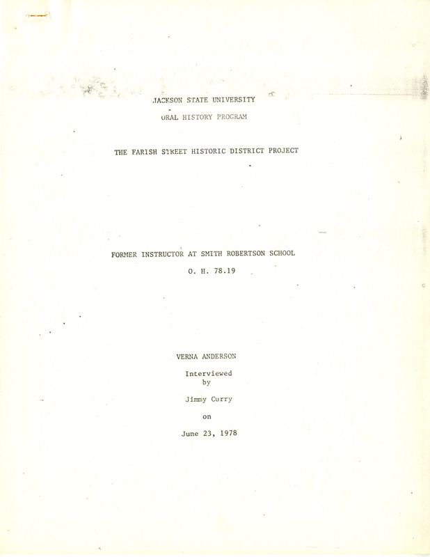 Verna Anderson began teaching 2nd grade at Smith Robertson School in 1936 and worked there until the school’s closing in 1971. She discusses her experiences as a teacher and the factors that caused the school to close in 1971 as well as actions taken to preserve the school in the present.