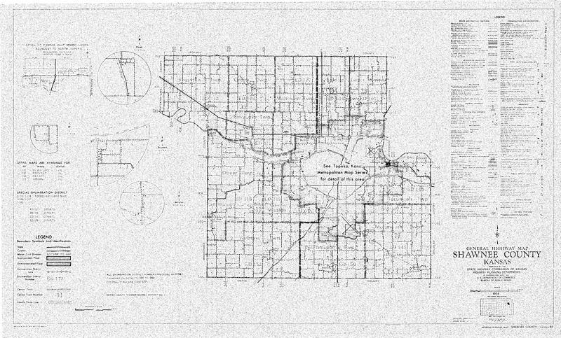 Case Data and Exhibits for Brown III, a relitigation of Brown v. Topeka Board of Education (1954) that corrected resegregation issues caused by open enrollment school choice in 1992. The legend marks roads and roadway features; public service facilities and more. The left-hand side of the map contains more detailed views of several communities.