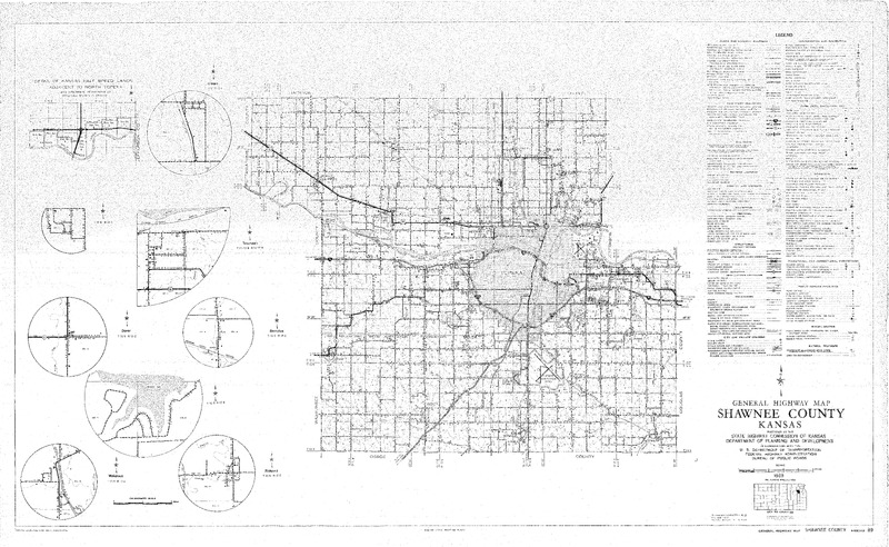 Case Data and Exhibits for Brown III, a relitigation of Brown v. Topeka Board of Education (1954) that corrected resegregation issues caused by open enrollment school choice in 1992. The legend marks roads and roadway features; airways and airports; drainage; structures; conservation and recreation; public service facilities and more.
