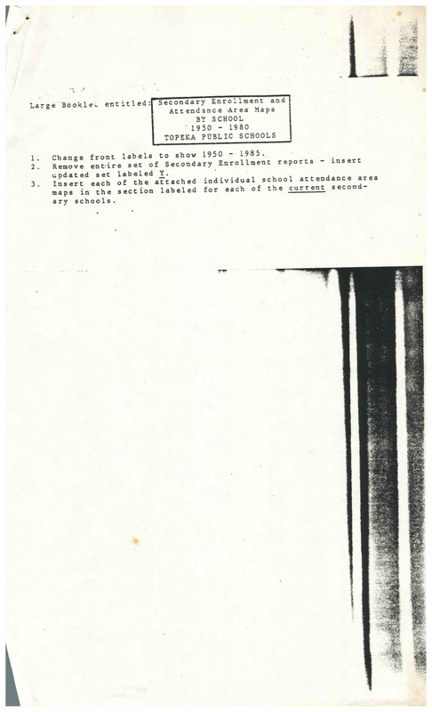 Case Data and Exhibits for Brown III, a relitigation of Brown v. Topeka Board of Education (1954) that corrected resegregation issues caused by open enrollment school choice in 1992. Charts and maps showing enrollment and attendance area breakdowns for every school in the Topeka Public School System from 1950-1985.