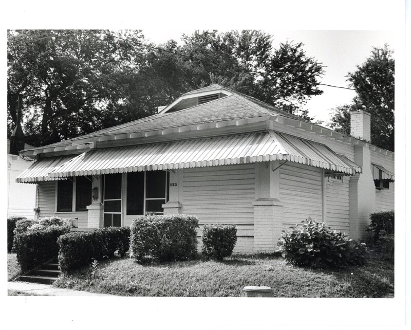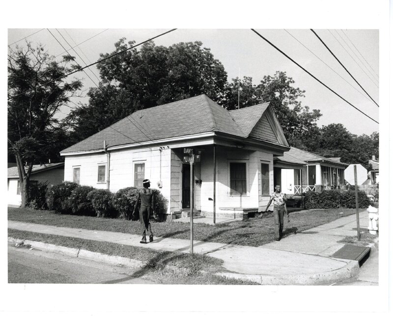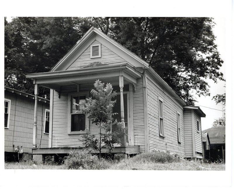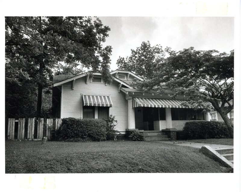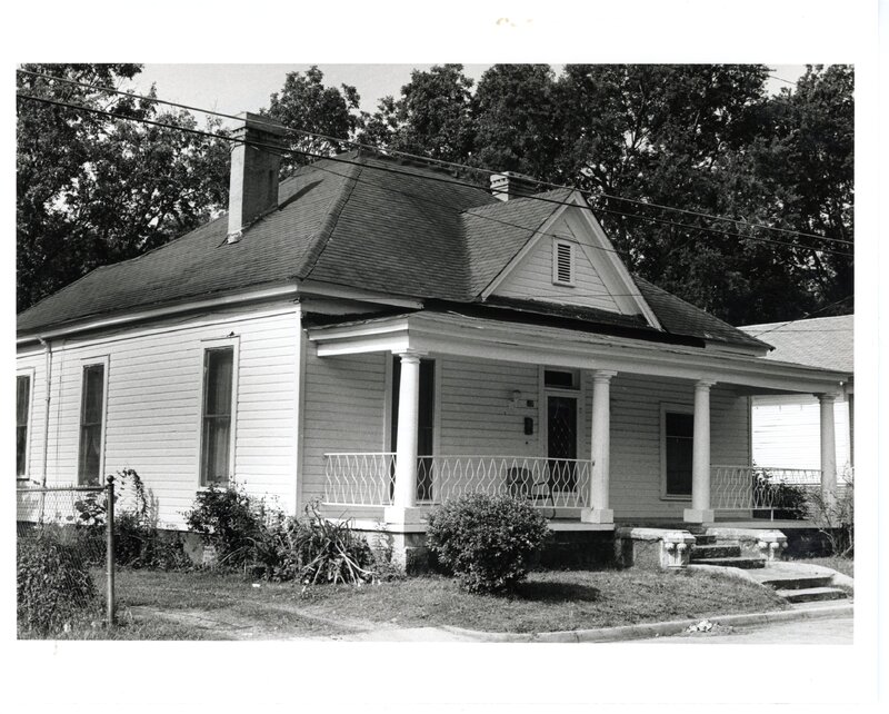 A photograph of a house on E. Hamilton St. in the Farish Street Historic District. Notation on the photograph indicates the architecture is Queen Anne Style.
