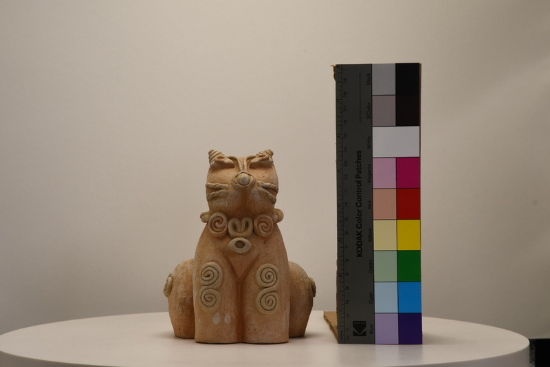 Under the instruction of Professor Carroll Harris Simms, Texas Southern University art students created terracotta sculptures inspired by his travels to West Africa. Themes such as the mother-child relationship, animals, and shrines are frequently seen in this collection featuring their works, along with signature embellishments like swirls.