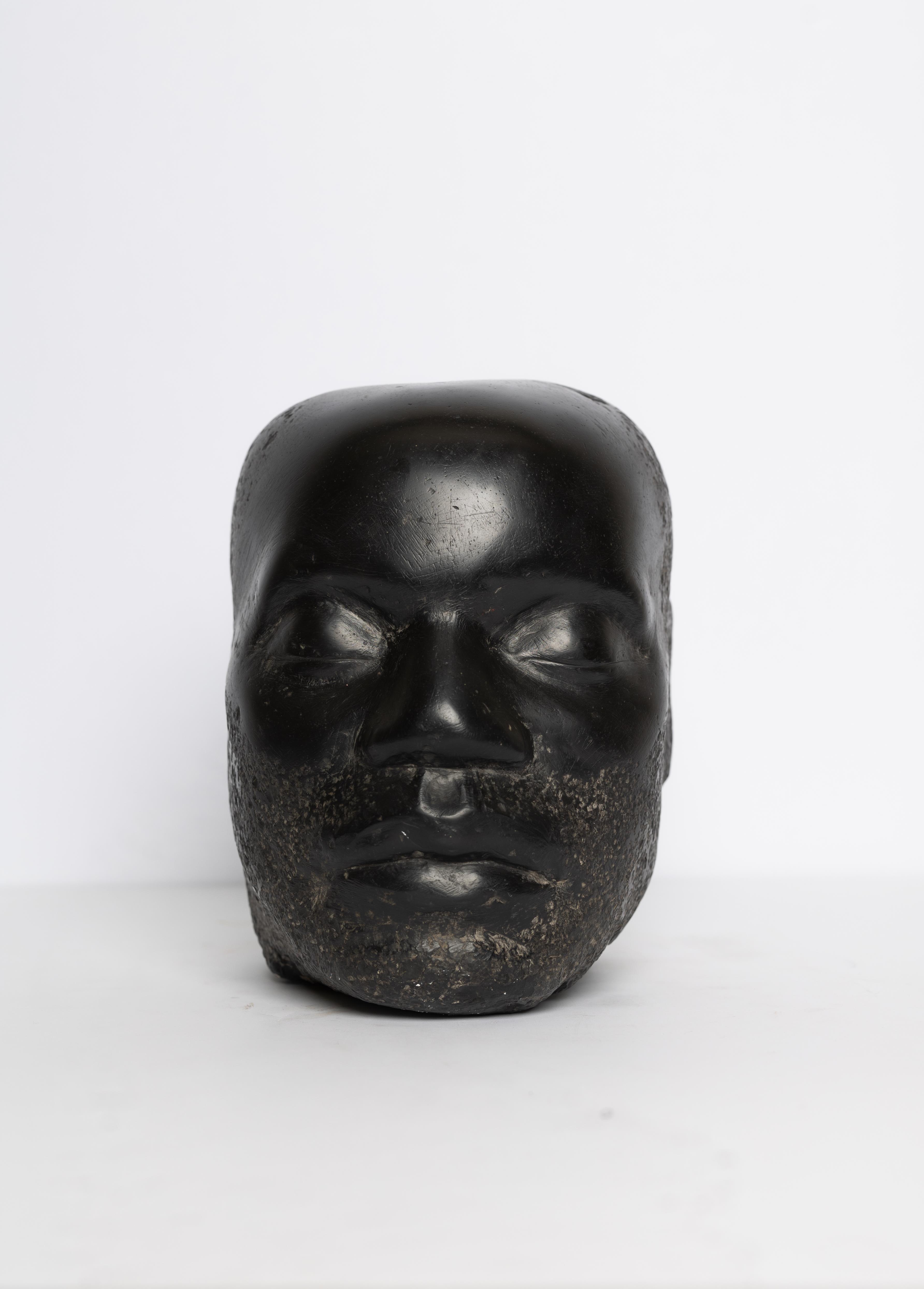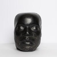 Guy L. Miller was an artist from Los Angeles, CA. Character is a sculpture of the head of a bearded Black man. His eyes are closed, and he looks as if he is in a deep slumber. The marble sculpture head has a deep black color, invoking fortitude and calm.