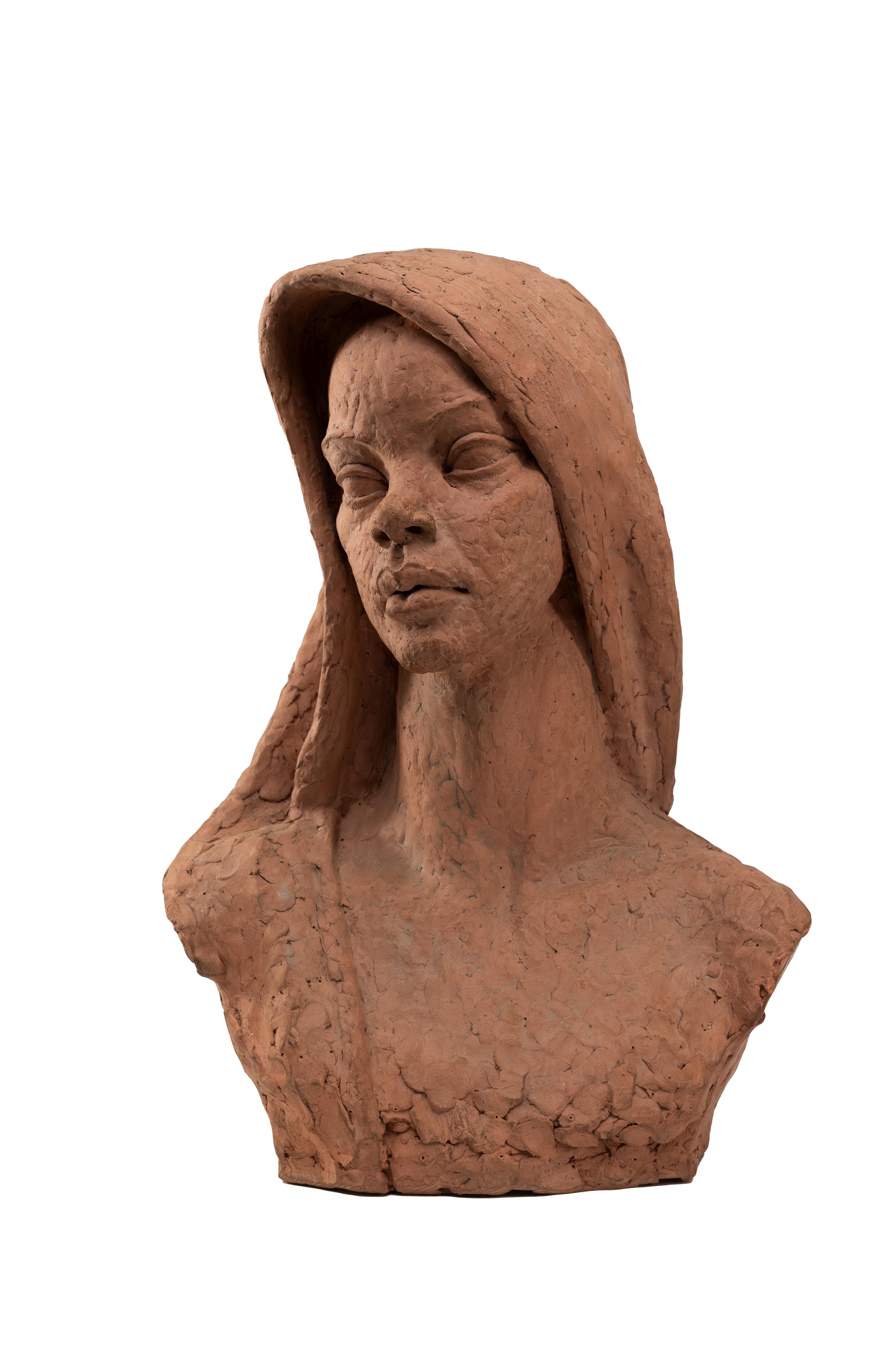 William Artis was a sculptor from Washington, NC. Young Mother is a ceramic sculpture of a hooded woman looking off into the distance away from the viewer.