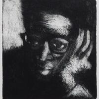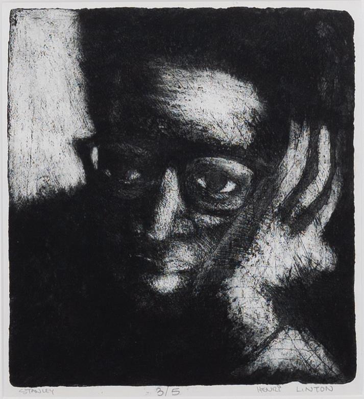 Henri Linton was an artist and art professor from Tuscaloosa, AL. Stanley is a print of a solemn Black man. The subject rests his head in his hand as he looks past the viewer.