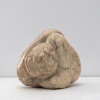 Irabell Cotton was a multidisciplinary artist from Harris, Oklahoma. Despair is a marble sculpture depicting a person in an anguished pose. The figure is balled into itself, with its head in one hand and the other arm wrapped around its shoulder.