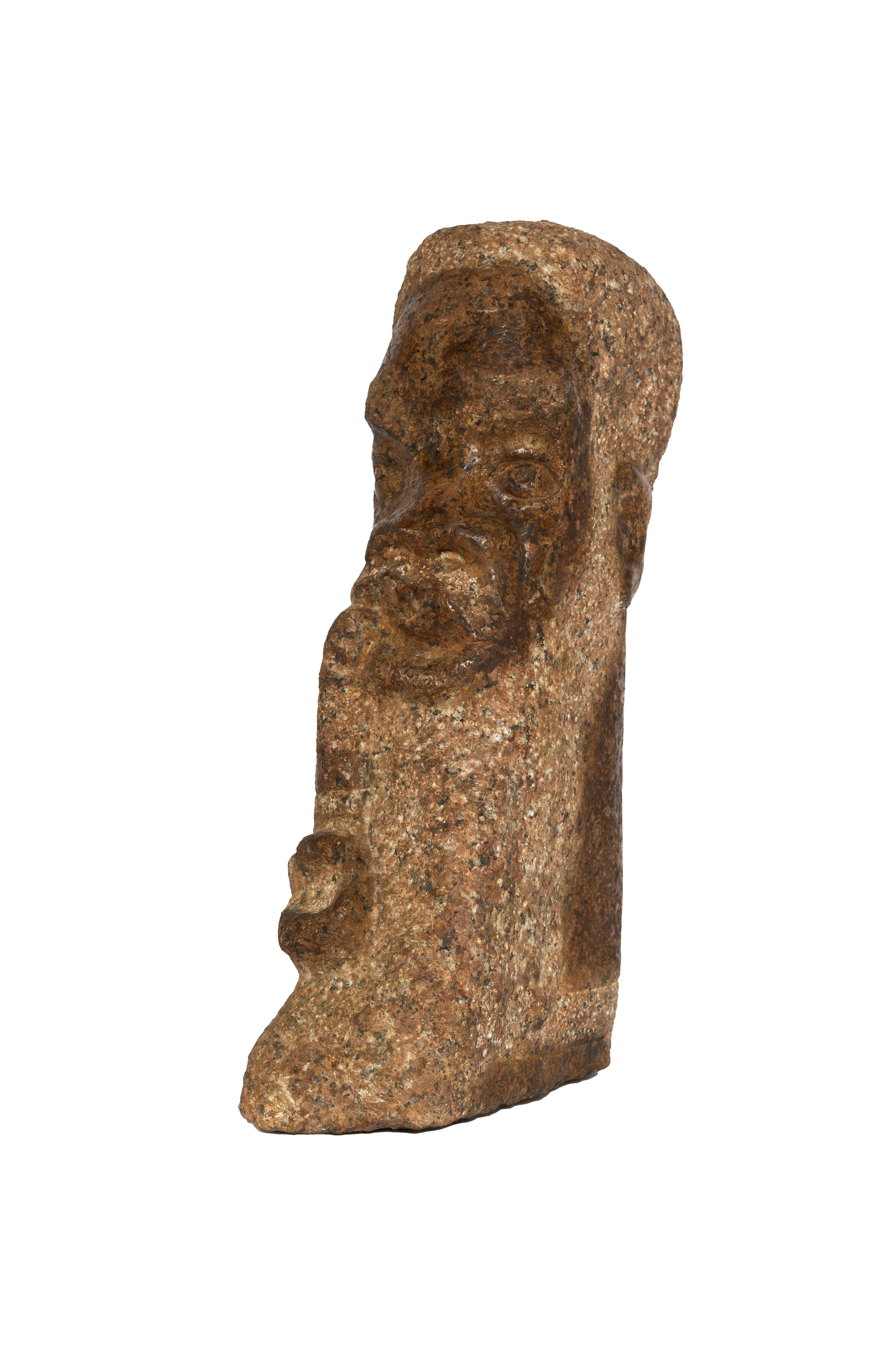 Dr. Eddie Jordan, Sr. was a Southern artist from Wichita Falls, TX. Old Slave is a granite sculpture depicting an elderly Black man. The subject has a full, long beard and is smoking a pipe.