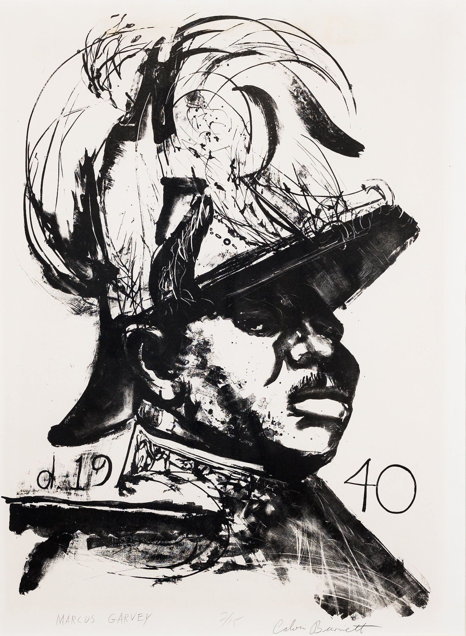 Calvin Burnett was a graphic artist, illustrator, painter, designer, and art teacher from Cambridge, MA. Marcus Garvey is a portrait of its namesake, a Jamaican political activist. Marcus Garvey was a renowned Black nationalist and Pan-Africanist.