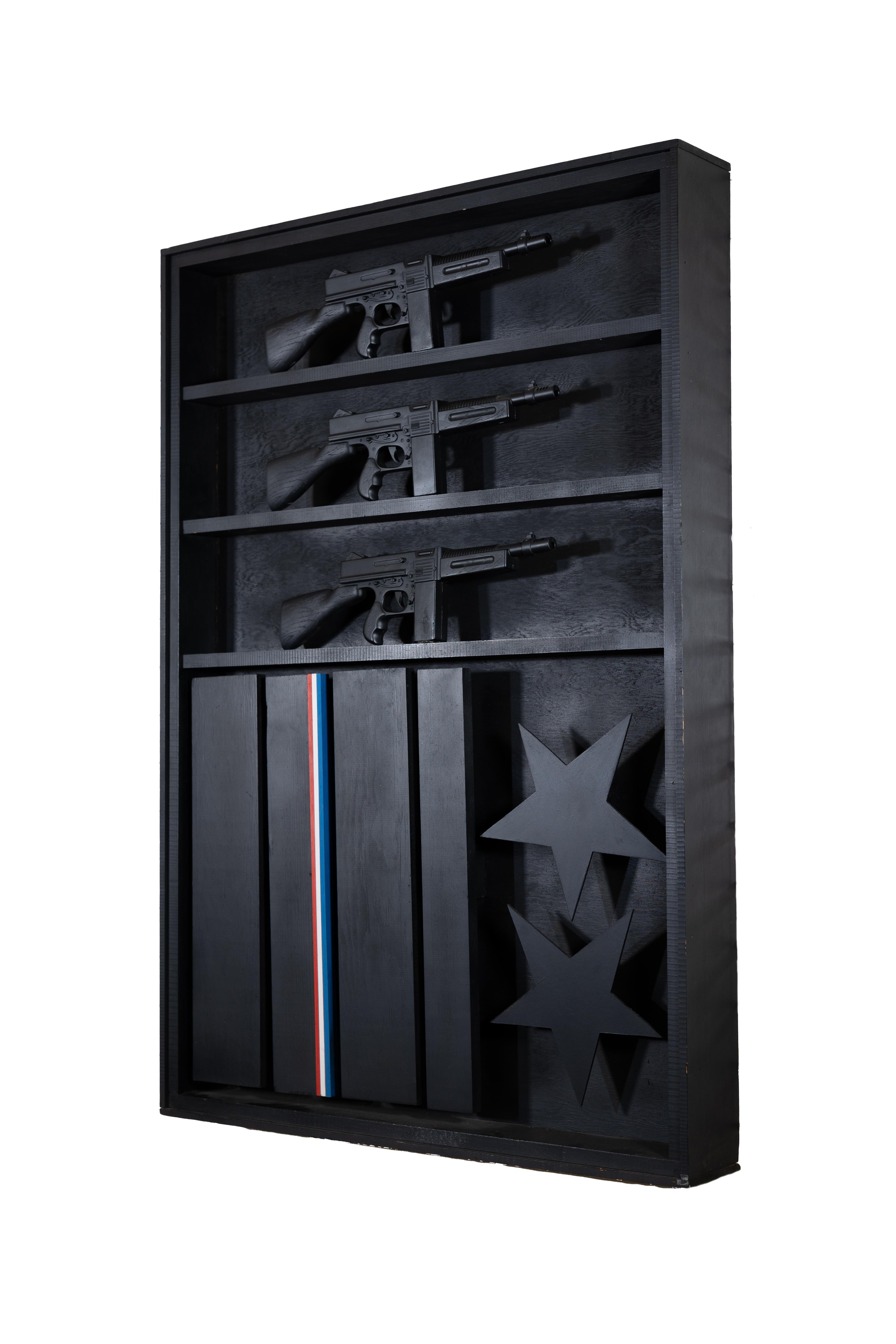 James Newton was a painter, printmaker, scholar, and professor from Delaware. The American Sixties is an assemblage that symbolizes the political turmoil and militarization that arose in the 1960s after the Civil Rights Movement.