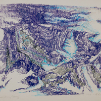 J. Brooks Dendy III was a painter, graphic artist, and educator from Pittsburgh, PA. The Allegheny Valleys depicts an aerial view of a mountain range, valley, and river in Western Pennsylvania.