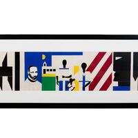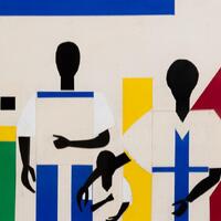Romare Bearden was an artist, author, and songwriter from Charlotte, NC. Atlanta Mural is a maquette of a mural created for City Scenes '76-'77, the National Paint and Coatings Association bicentennial. Bearden includes the Kente symbol, Dr. Martin Luther King Jr's head, the silhouette of a Black family, a church, and a plot of land to represent the African American influence in the city.