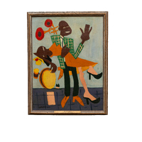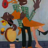 William H. Johnson was a painter from Florence, SC. Untitled Folk Scene depicts a couple doing a wide variety of dances within the Southern Jazz tradition. In this iteration of the series, a dapper man dips an equally stylish woman as instruments play around them.
