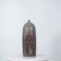Maroon Ceramic Vessel with Ridges