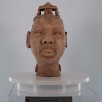 Ellison’s bust was created during his time as an art student at TSU. Under the instruction of Professor Carroll Harris Simms, artists would create self-portraits embellished with decorations like spirals and accentuated crown pieces, like in Ellison’s sculpture. These busts are inspired by Nok terracotta sculptures and Ife busts, which Simms saw during his travels to Western Africa.