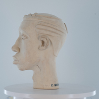 Walker’s bust was created during his time as an art student at TSU. Under the instruction of Professor Carroll Harris Simms, artists would create self-portraits embellished with textures, like those seen in the hair of this sculpture. While most were made from terracotta clay, this one is made from plaster. These busts are inspired by Nok terracotta sculptures and Ife busts, which Simms saw during his travels to Western Africa.