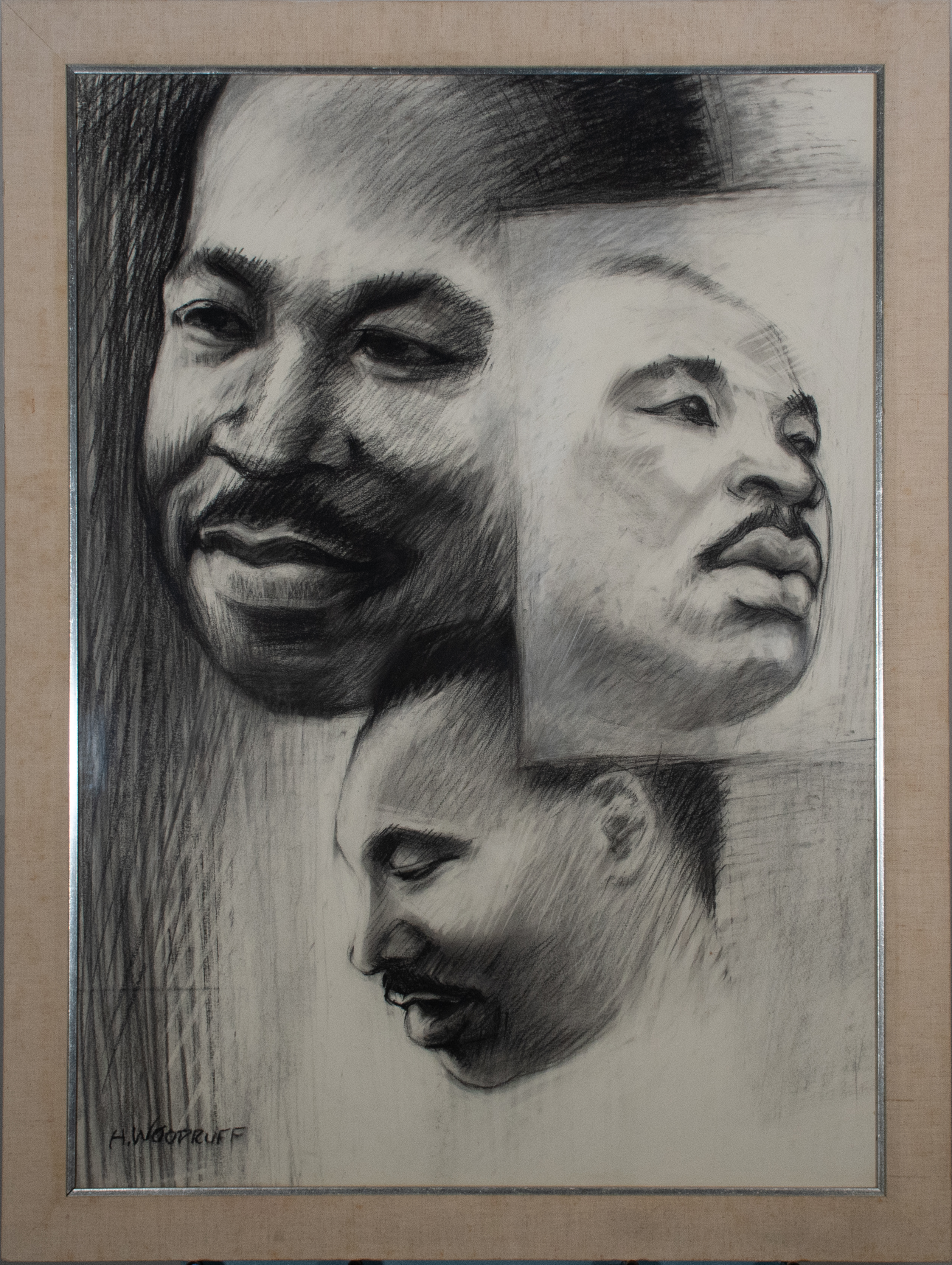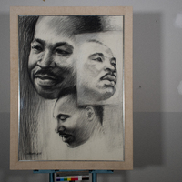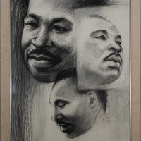Woodruff’s portrait depicts Martin Luther King Jr., the iconic civil rights leader who was assassinated in 1968. Woodruff taught art at Atlanta University for 15 years and perhaps came into contact with MLK during this time. Two of these three side profiles appear to show King smiling, while in the third he is looking away with a serious expression. Woodruff's Art of the Negro murals at Clark Atlanta University are one of his crowning achievements.