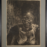 Obey’s print is a self-portrait. Under the direction of Dr. Biggers and Professor Simms, students would paint and draw self-portraits and sometimes sculpt self-portraits of their busts. This print depicts Obey in her bra; she also painted a self-portrait in a similar style. Biggers once referred to Obey as "one of our finest painters.”