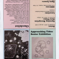 This is a brochure for Takahashi’s senior art exhibition. The culmination of the Texas Southern art curriculum is a senior exhibition where students showcase artwork created over the course of their undergraduate studies. The brochure features a brief biography, an artistic philosophy, a catalog of the artwork featured in the exhibition, exhibition viewing information, and three photos of her artwork.