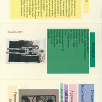 This is a brochure for Perez’s senior art exhibition. The culmination of the Texas Southern art curriculum is a senior exhibition where students showcase artwork created over the course of their undergraduate studies. The brochure features a brief biography, a photograph of the artist, an artistic philosophy, a catalog of the artwork featured in the exhibition, and five photos of her artwork.