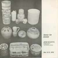 This is a brochure for Sifuentes’ senior art exhibition. The culmination of the Texas Southern art curriculum is a senior exhibition where students showcase artwork created over the course of their undergraduate studies. The brochure features a brief biography, a catalog of the artwork featured in the exhibition, and photos of two of his paintings and several of his ceramics. Sifuentes later returned to TSU to teach pottery, ceramics, and sculpture classes.