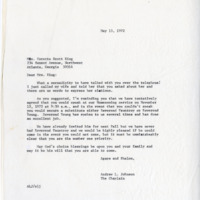 A letter from Chaplain Johnson to Coretta Scott King advising that she is the number one priority to have speak however, if she could not Rev. Fauntroy would be a welcomed second choice.