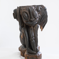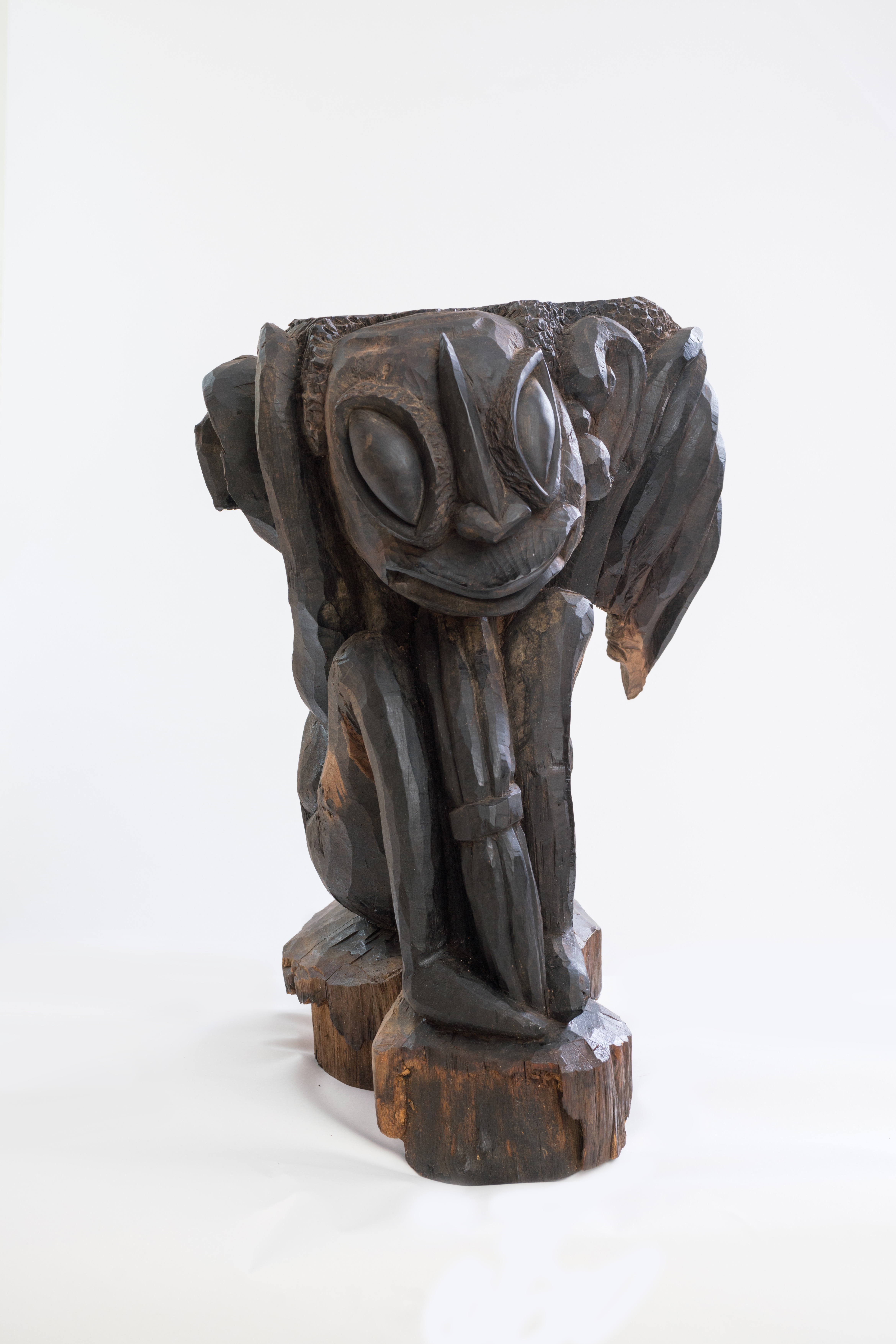 Entrusted to FAMU based on the university's study in agriculture, the Protector of the crops is a spirit deity carved and placed on a farmer's land in Africa as a threat to anyone attempting to trespass. This spirit holds a coiled serpent while protecting a plantain between its feet.