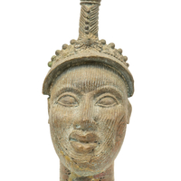 This rare sculpture unearthed in Nigeria belongs to the Yoruba people of that region. It is believed that a single individual or workshop created this copper alloy sculpture between the 12th and 15th centuries to represent a king or highly respected warrior figure.