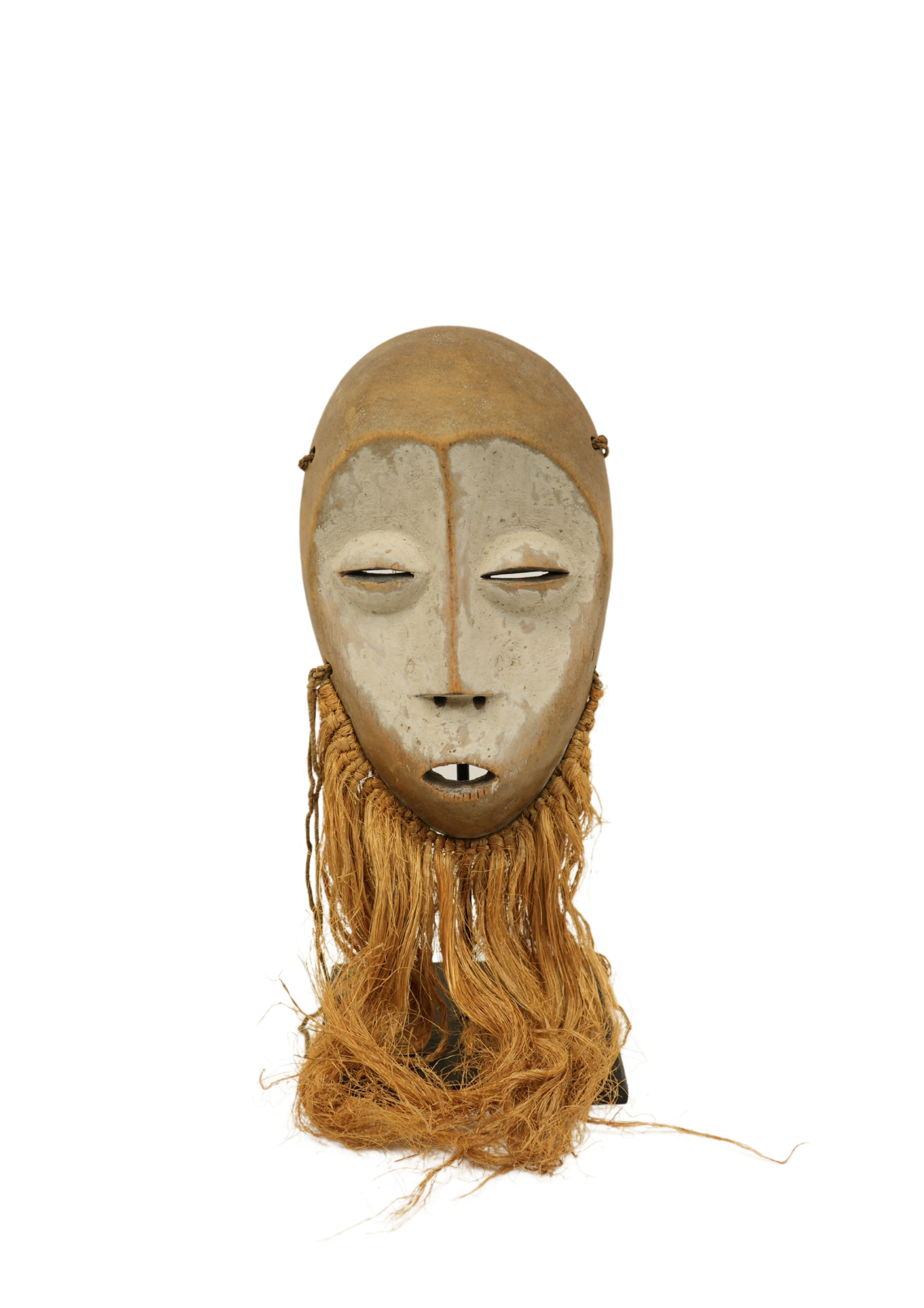 In the Western context, this item is a “mask” because it covers the face, but technically in Bwami culture, this piece is a sculpture. The Bwami society of the Lega people is located in the Democratic Republic of the Congo; they use these masks for initiation rituals, with five types to signify different ranks, and for ancestral veneration.