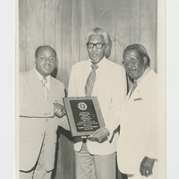 This photograph depicts two unidentified men with Joseph E. Gibbs, a faculty member at Florida A&M University’s original College of Law, World War II veteran, and YMCA executive director. The Florida A&M Foundation awarded Gibbs a plaque on June 30, 1972, for “His Exceptional & Meritorious Service to Florida A. & M. University.”