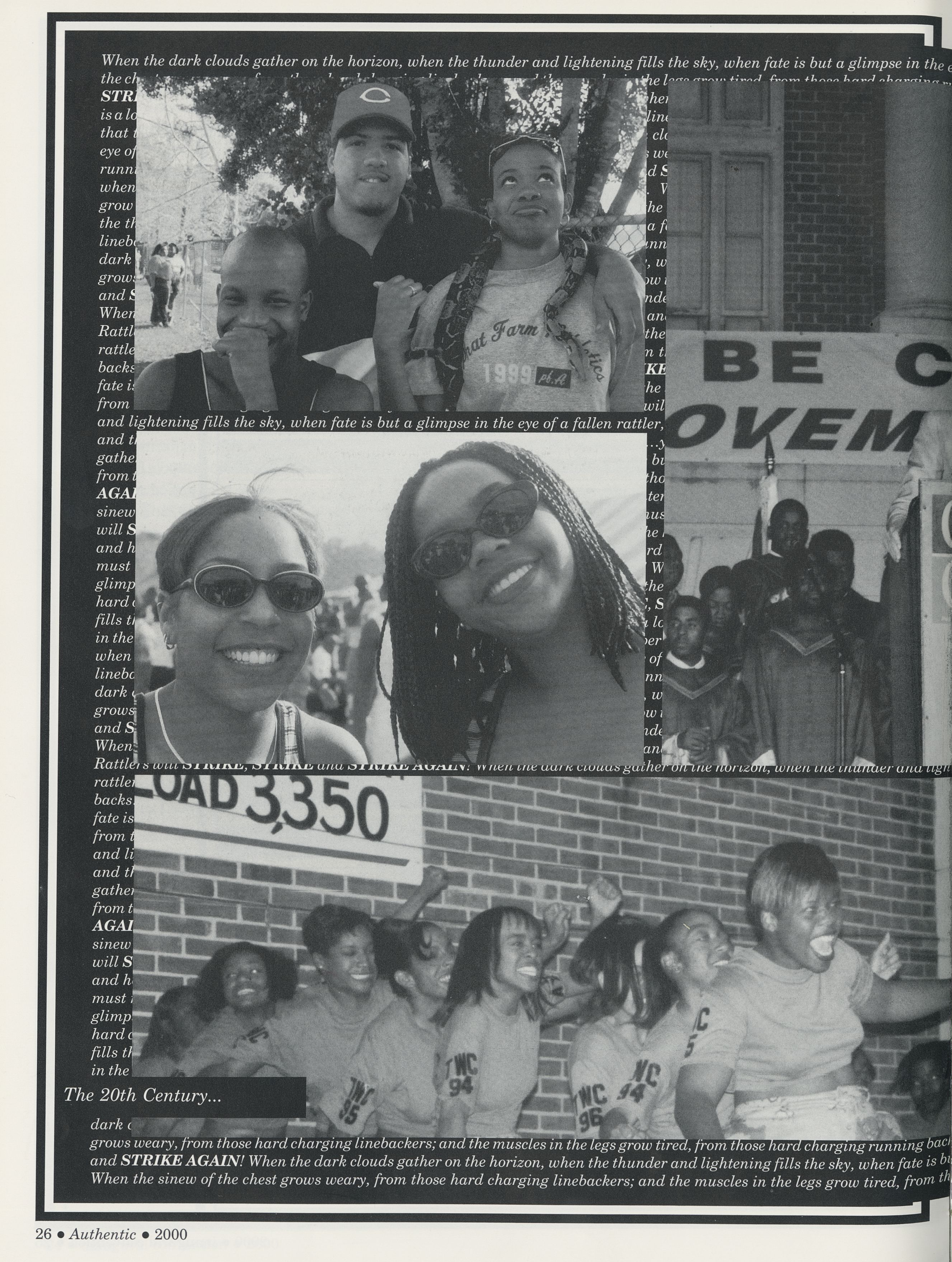 This two-page spread featured in the 2000 Rattler Yearbook showcases various events on Florida A&M’s campus from 1995 to 1998. Titled “A Glimpse Into History,” the spread honors the past by showing political campaigning by Hilary Clinton during the 1996 election, student organizations, and other aspects of student life.