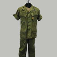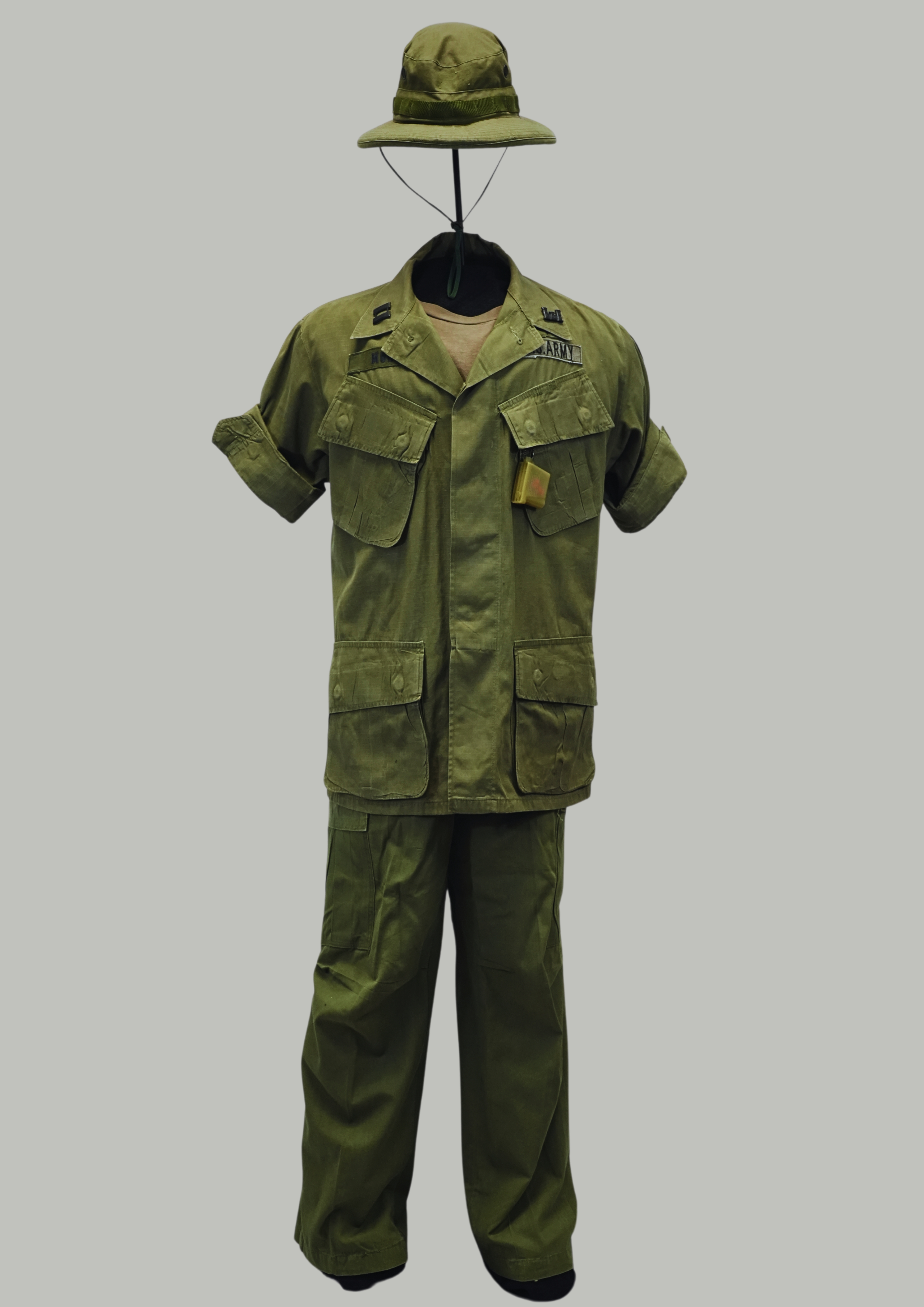 Clothing worn by FAMU alumnus, Captain James L. Moran when deployed to Honduras, Central America. The mission was called in Spanish, "Ahaus Tara Dos" (Big Pine Two). Captain Moran was tasked with the construction of housing for military personnel and a temporary C 130 Aircraft Runway to deliver supplies and transporting of military personnel.