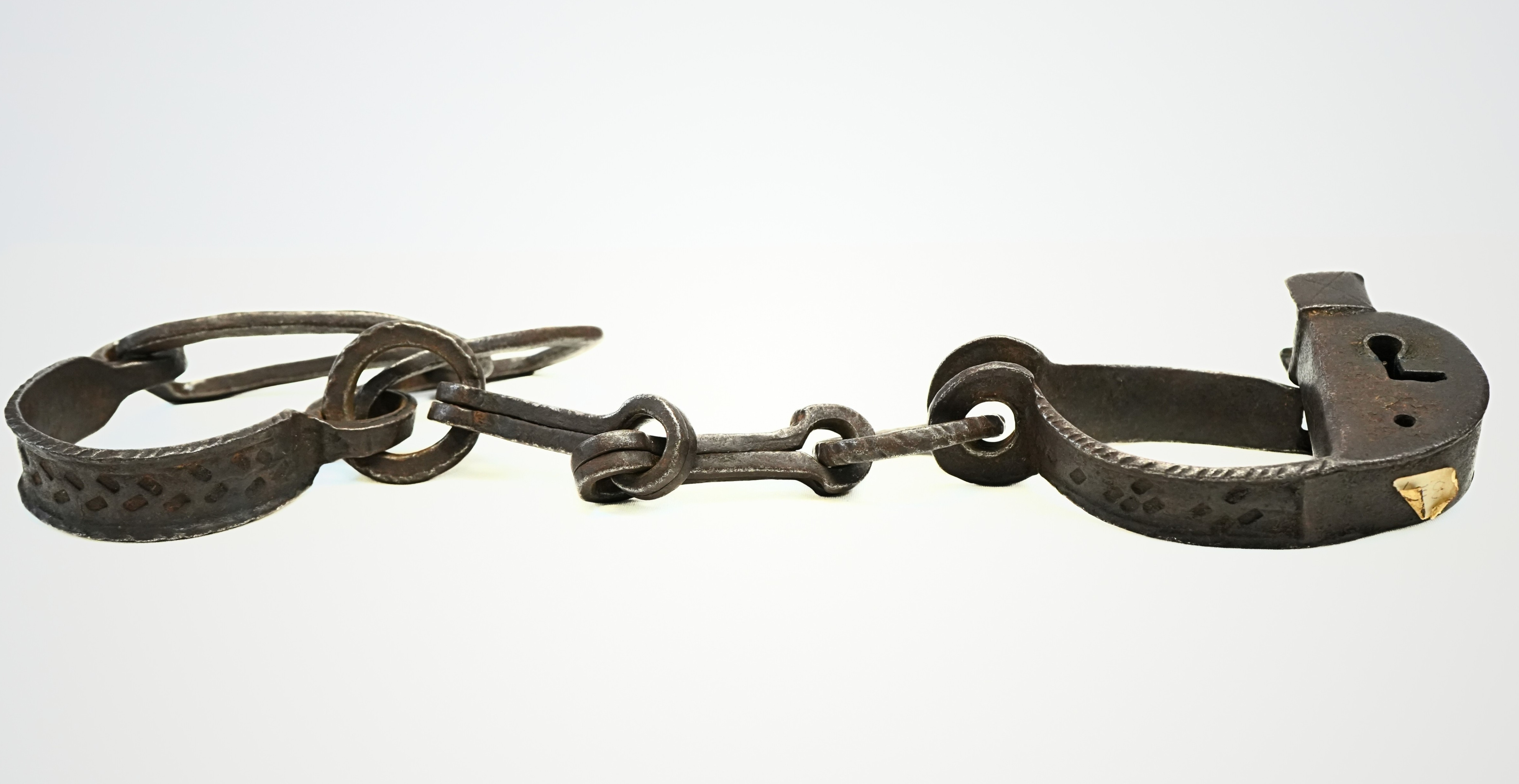 These rare cast iron shackles, used during the enslavement period, serve as haunting artifacts that symbolize the brutal reality of slavery. Designed to restrain and control, they reflect the dehumanization and suffering endured by enslaved individuals.