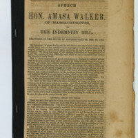 Rare Slavery Documents - The indemnity Bill, Cotton, not Slavery, was the immediate cause of the Rebellion. Speech of Hon. Amasa Walker of Massachusetts on the Indemnity Bill. February 18th 1863.