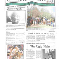 This newspaper clipping from the February 1993 issue of the Seminole Tribune features testimony from the 1923 Rosewood Massacre. Lee Ruth Davis was interviewed by one of their journalists at Palmetto General Hospital in Miami, Florida in November 1992.