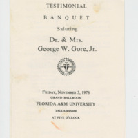 Memorabilia from President Gore’s 1982 Alpha Kappa Mu fraternity includes letters of condolence and recognition of his achievements. The collection also features invitations to dinner parties and luncheons honoring both Dr. Gore and his wife, Mrs. Pearl Gore, to celebrate their lasting contributions to the university and community.