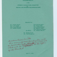 A progress report outlines the revisions and enhancements made to the recommendations from the Student-Faculty Subcommittee emphasizing the adjustments for clarity, impact, and alignment with the committee's objectives, paving the way for final approval and successful implementation.