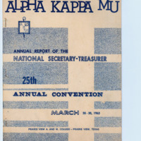 Written by the Secretary-Treasurer of Alpha Kappa Mu National Honor Society, George W. Gore, Jr., this report marks the 25th annual convention of the organization. An organization first created to develop an intellectual community of HBCU students nationwide, this report was proof of its enduring success since Gore first started the initiative.