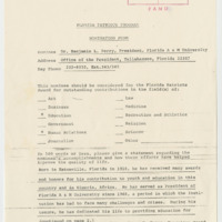 In January 1976, the Leon County Bicentennial Committee nominated and approved Dr. Benjamin L. Perry for “outstanding contributions in the fields of Human Relations and Education.” The document showcases the deep respect Dr. Perry fostered in his community through hard work performed locally, nationally, and internationally.
